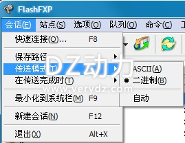 1、FlashFXP中二进制方式的设置