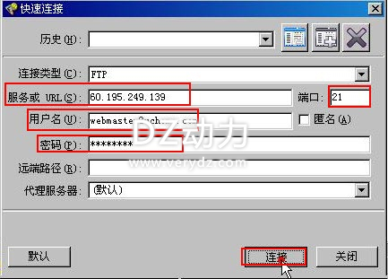 2、登陆ftp登陆信息—>点击 连接