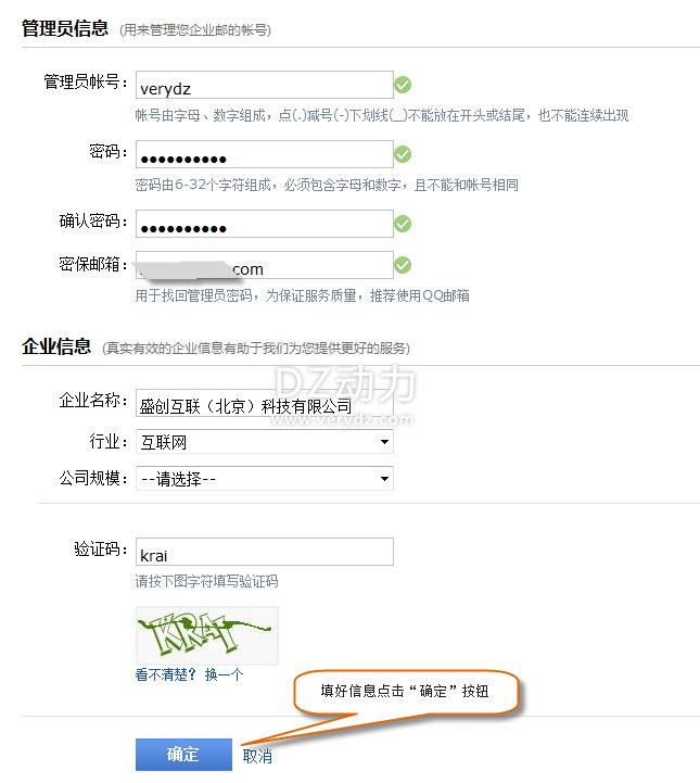 QQ企业邮局注册流程: